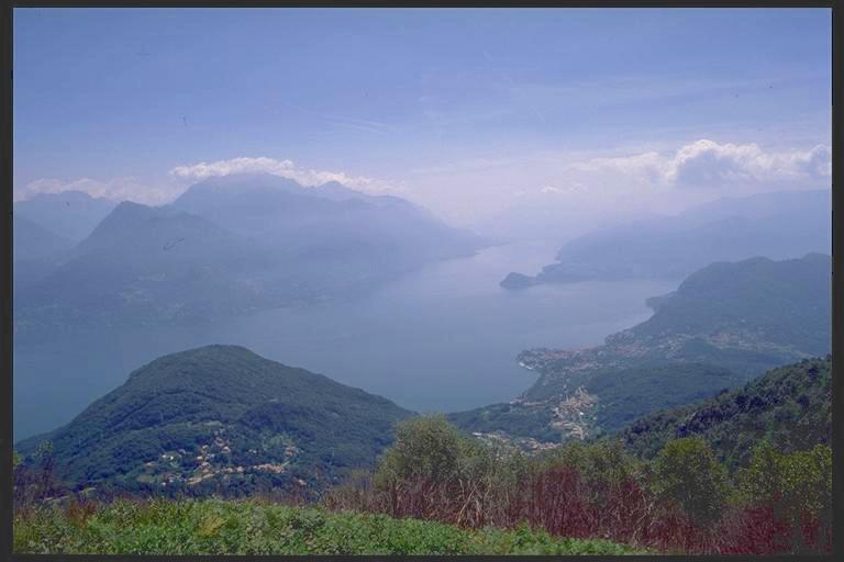 Das nächste Bild zeigt links Breglia, am rechten Ufer Menaggio, den Ort, der so auffällig in den See ragt, und wieder Bellagio mit dem markanten Berg zwischen den Seearmen.