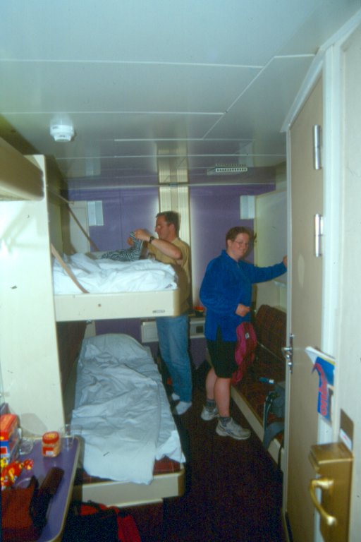 Hier ist noch mal ein Größenvergleich Fähre-Insel, mit einer Insel weiter draußen. Selbst ohne den Schornstein schwimmt da bereits ein Hochhaus vorbei.