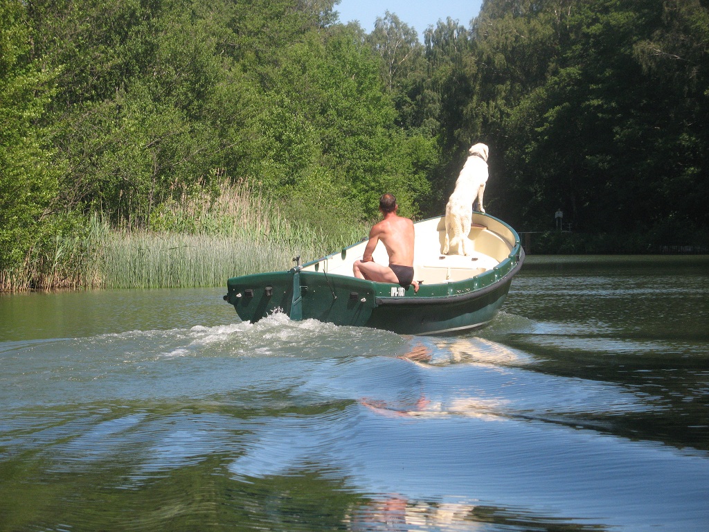 27. Juni 2010: Die Zahl der Ruderer sinkt. Wir entscheiden uns deshalb für eine kurze gemütliche Tour in den Herrenzootzen, stilecht natürlich mit drei Herren im Gig-Doppelzweier mit. In der Südostecke des Großen Zechliner Sees gibt es eine sehr schmale Landbrücke zum Repenter Kanal. Hier kann man praktisch im Gebüsch liegen und Boote auf dem Kanal beobachten (hier könnten gut Radarkontrollen gemacht werden ;-)