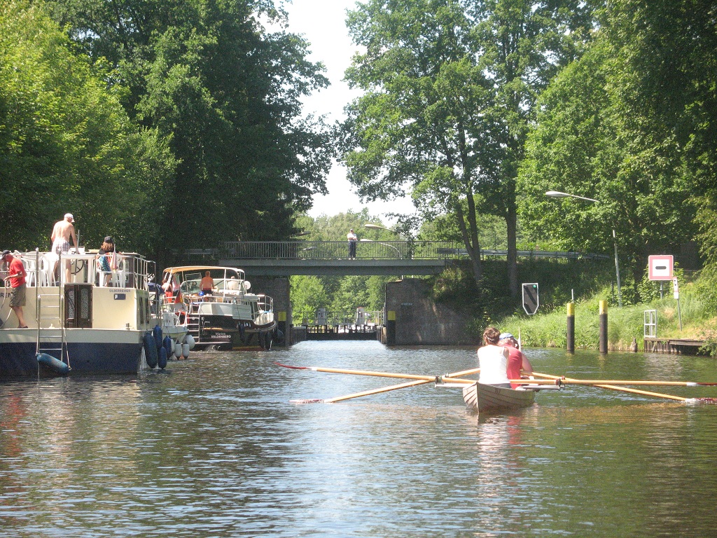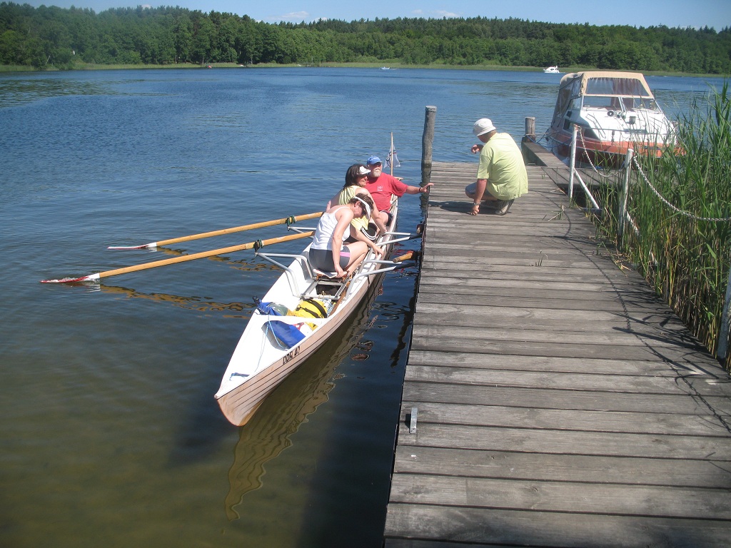 28. Juni 2010: Die Ruderbereitschaft ist wieder größer. Heute geht es mit zwei Booten nach Canow. Aber vorher wird gefrühstückt. Außerdem treffen von uns unerwartet Wanderruder vom DRC (Deutscher Ruderclub von 1884 e. V. Hannover) ein, darunter mit Adolf vom HRC sogar ein guter Bekannter. Die Gruppe fährt in unsere Richtung.