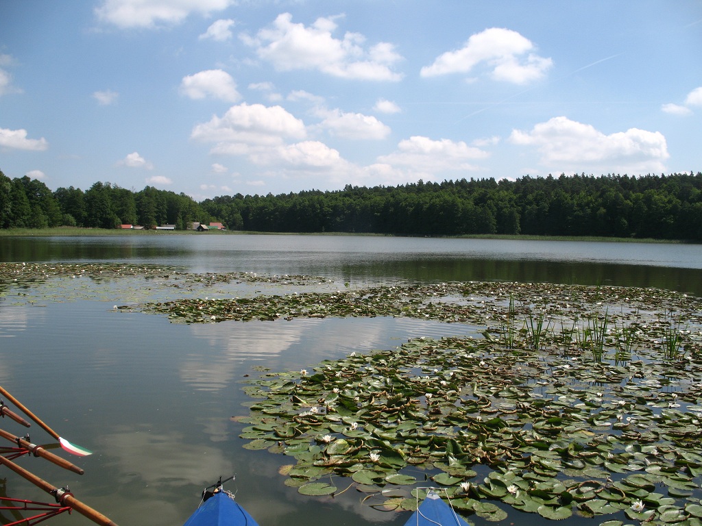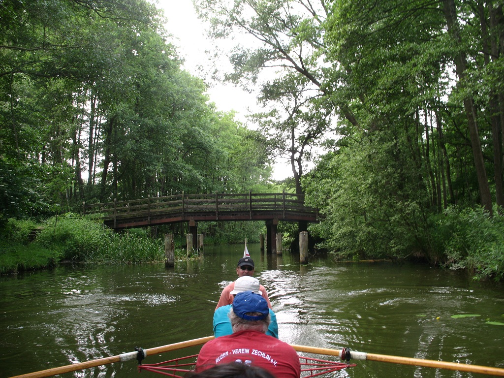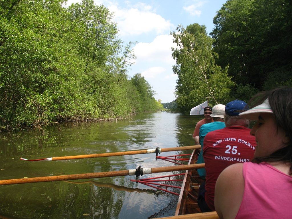 30. Juni 2010: Der letzte Rudertag, da ich am Wochenende meine Funkprüfung habe (UBI und SRC, also Binnenschifffahrts- und UKW-Seefunk). Es geht in den beschaulichen Kagarsee. Vom bereits bekannten Schlabornsee geht es durch eine kleine Brücke, den Dollgowkanal entlang in den Dollgowsee. Obwohl schon der Dollgowsee relativ ruhig ist, bringt der Kagarbach dann wirklich Abschied von den Motorbooten. Es ist zwar relativ eng, aber mit geschicktem Steuern nicht zu eng für unsere Boote.
