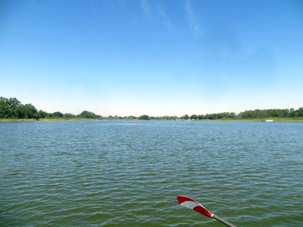 Vom Sumpfsee aus ist es nicht mehr weit bis in die Müritz. In die kleine wenigstens, die zwar immer noch in jede Richtung gut einen Kilometer misst und rund drei Quadratkilometer Oberfläche hat, aber mit der eigentlichem Müritz dennoch nicht verglichen werden kann. Hier am Ufer liegt Rechlin, wo wir beim Segelverein einkehren. Vom Gastanleger bis zur Gastronomie ist es noch ein gutes Stückchen über die Steganlage, hier an der Müritz ist halt doch mehr los.